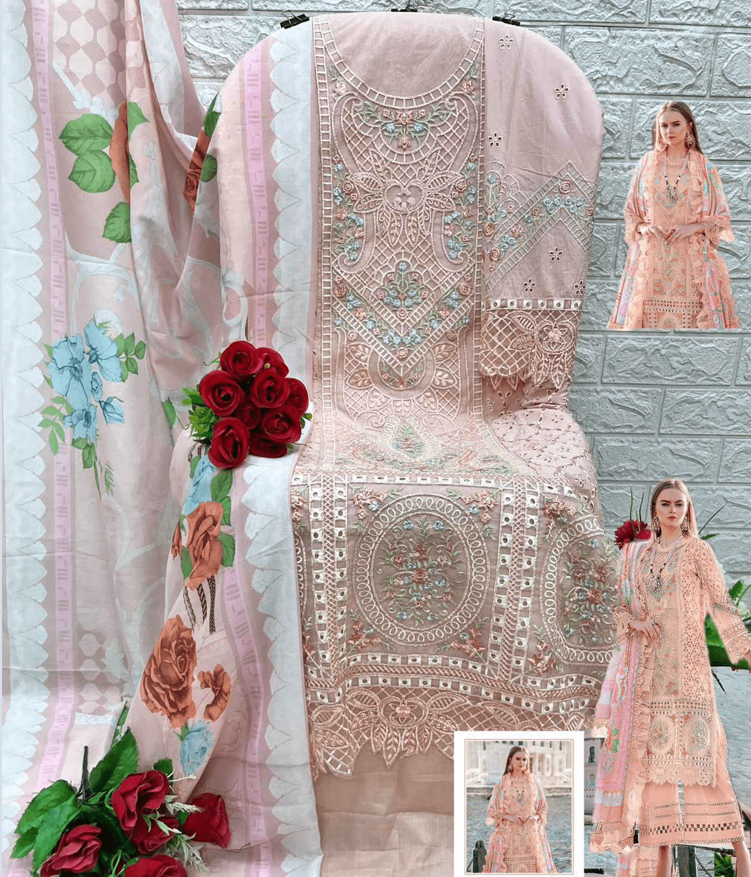 Pakistani Style Pure Lawn Cotton Dress Material With Fixed Heavy Embroidered Orange Patchwork